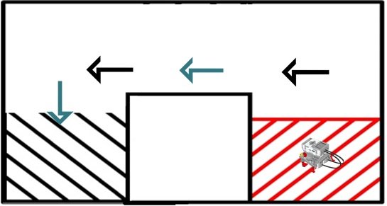 - Observa el espacio y define el reto. - Plantea una hipótesis: ¿Cómo crees que el robot podrá llegar a la zona negra? - Diseña una solución con sensores y motores. - Analiza los resultados y concluye si tu hipótesis era correcta. - Comparte tu estrategia con el grupo.