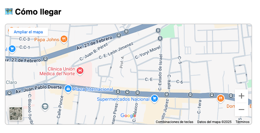 Si tienes un negocio físico o deseas mostrar tu ubicación, añadir un mapa interactivo es clave. Esto genera confianza y ayuda a los usuarios a encontrarte con facilidad.