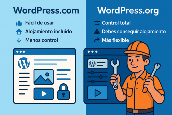 Aunque tienen nombres parecidos, WordPress.com y WordPress.org son muy diferentes. Entender esta diferencia es clave para elegir la mejor opción para tu proyecto web. Puedes acceder a ambos sitios web y darte cuenta de que son diferentes.