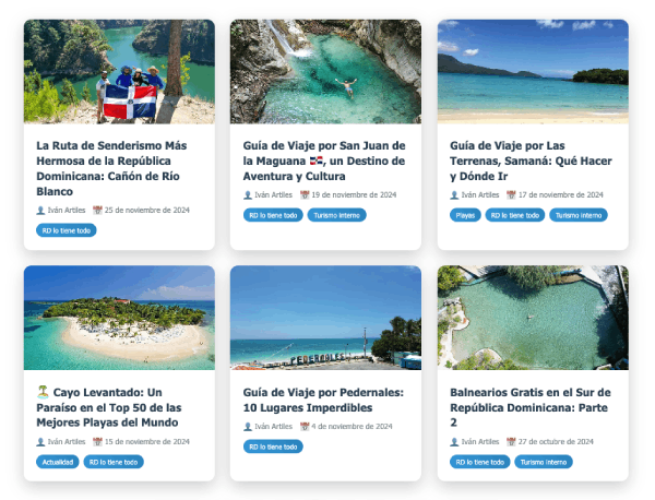 Ejemplos de entradas del blog de turismo de AquamanRD.