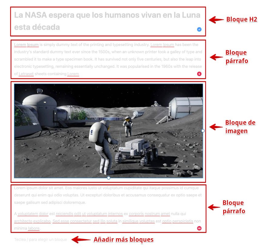 Vista del Editor de Bloques de WordPress (Gutenberg)
